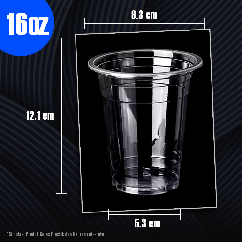 Gelas plastik ukuran 14 Oz untuk minuman dingin seperti es teh, soda, atau jus. Kapasitas 14 Oz (660 ml).